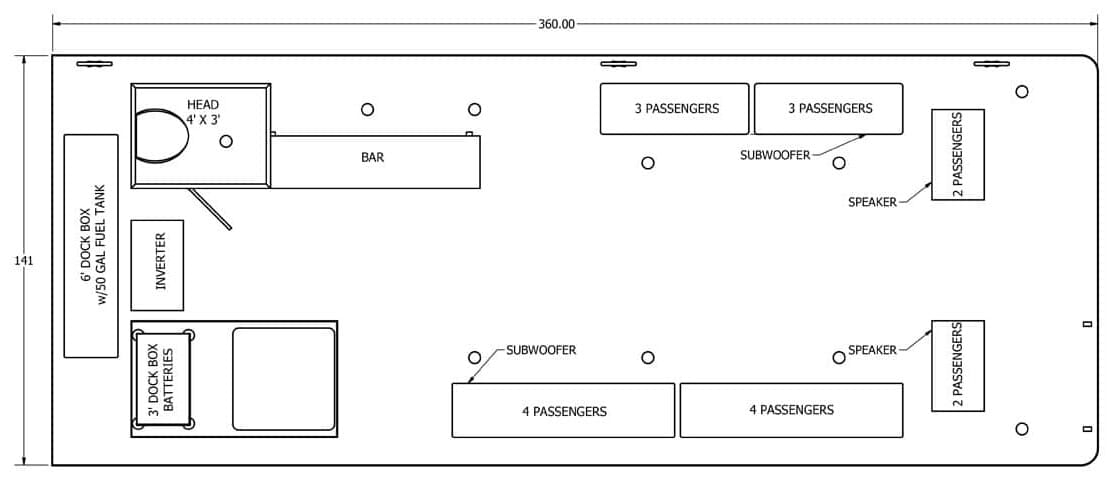 Remember, your vision steers the ship here at A&M Manufacturing. Our vessels are semi-customizable, meaning you can tailor them to fit the unique needs of your business. Need a head on board? Check. Fancy a fresh water system? We’ve got it. How about a JLA audio sound system and LED lights for those night-time cruises? Say no more!