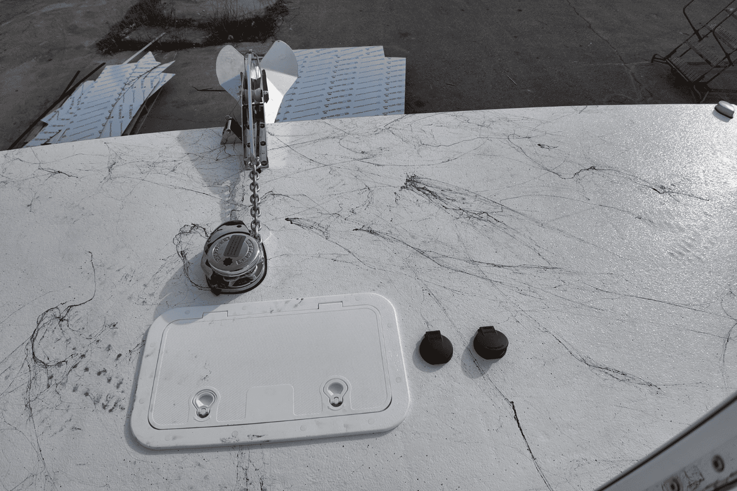 43ft Deck Length, 46ft LOA, 49ft w/engines,16ft BEAM